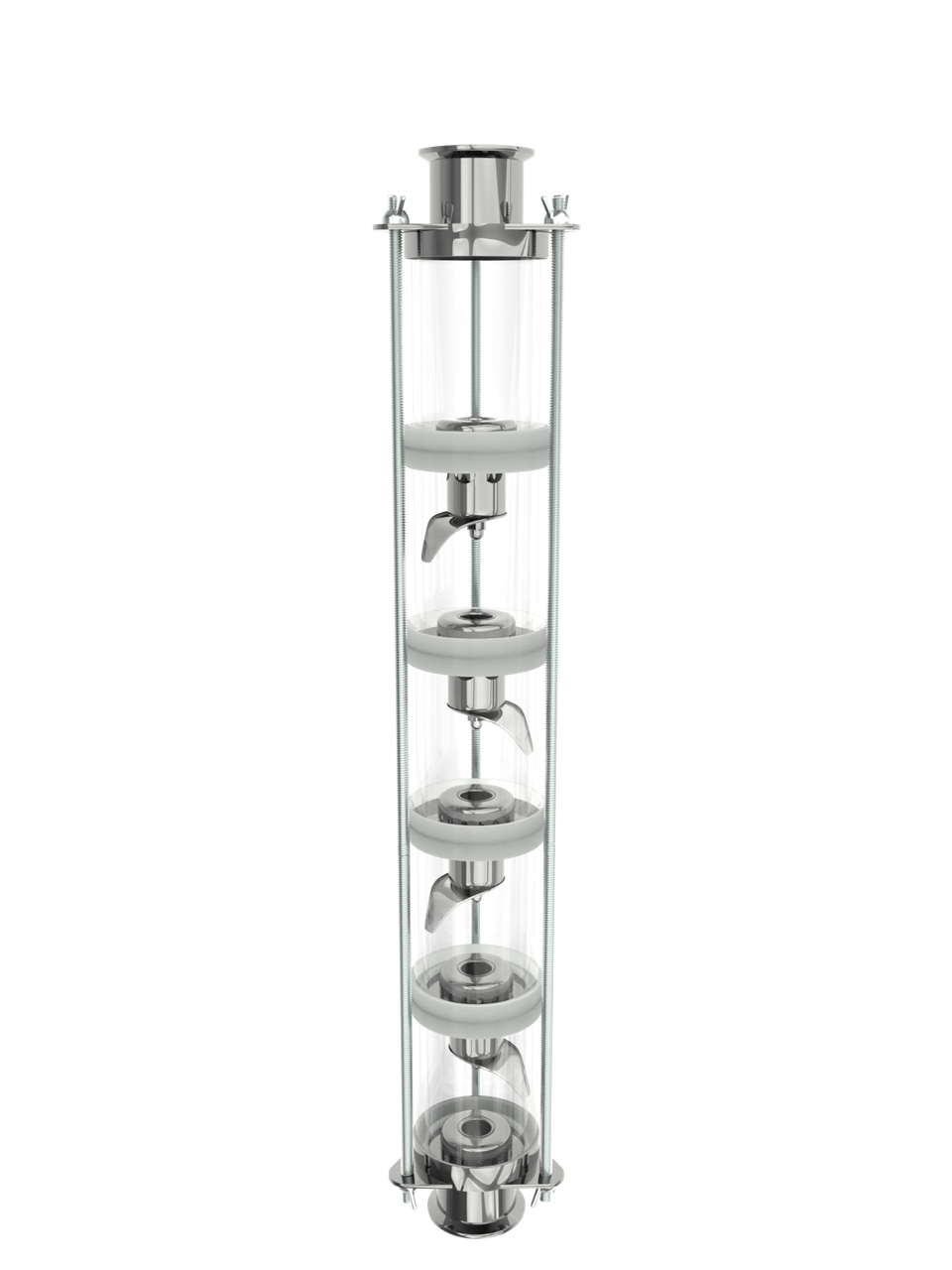 Колпачковая колона з нержавіючими ковпачками.Під кламп 1.5" або 2" (на вибір клієнта) Додатковий рівень + 600 грн Власне виробництво (м. Львів) Є в наявності дистилятори і куби під цю колону. Дивіться інші наші оголошення Ковпачки мають по центру зливний отвір для флегми, що робить їх універсальними. Немає необхідності встановлювати зливний ковпачок. Немає необхідності встановлювати кілька штук дорогих барботажних ковпачків. Один ковпачок ProCap працює на дуже широкому діапазоні від 800 до 2500 Вт. Принцип роботи колпачкових тарілок полягає в тому, що надходить робоча середовище заповнює тарілку до зливної перегородки. При цьому ковпачки повністю занурені в рідину. Пара надходить крізь щілини ковпачків і барботує через шар робочої середовища