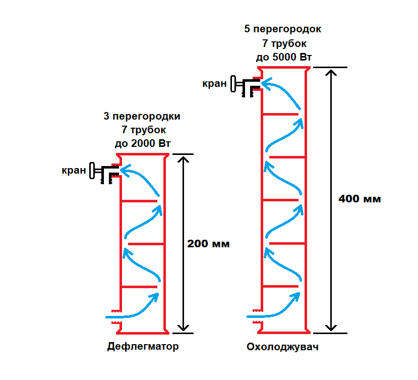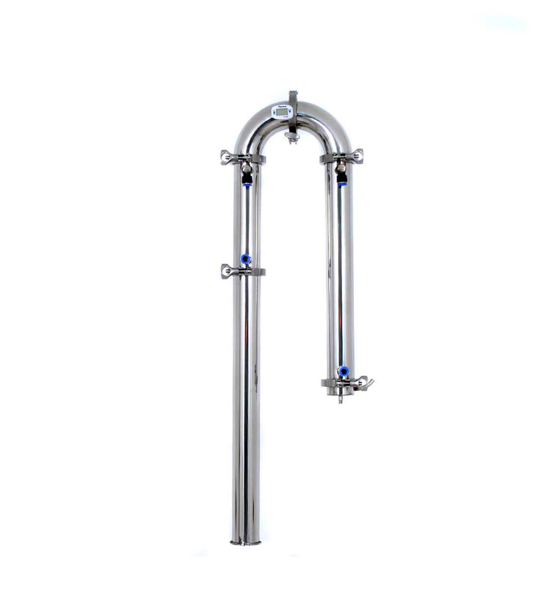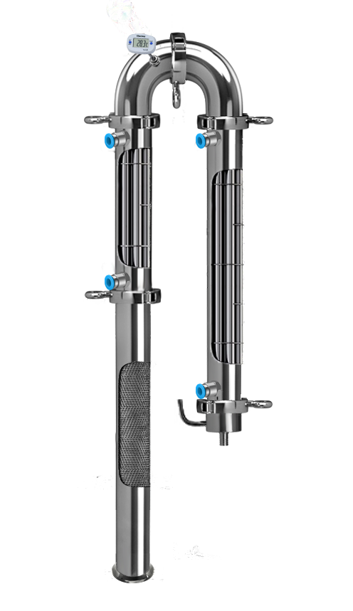 Надпотужна бражна колона Магнум Турбо. Під кламп 1,5". 7 трубок та перегородки в конденсаторі!Акція! Сантехкомплект в подарунок!Без куба - 3700 грн. Характеристики:Висота дефлегматора 200 мм, 7 трубок по 10 мм. 3 перегородки. Потужність до 2000 ВтВисота охолоджувача 400 мм, 7 трубок по 10 мм. 5 перегородок. Потужність до 5000 ВтДіаметр труби 38 ммКламп 1.5"Висота царги 500 ммШтуцера швидкозйоми 1/4" під шланг 10 ммХарчова нержавіюча сталь AISI304*потужність залежить від температури води, що подається, способу підключення, швидкості подачі води та інших факторів Швидкість в режимі першого перегону (ПотСтілл) до 7 л/гШвидкість в режимі повторної перегонки до 2,5 л/гПримітка: швидкість перегону залежить від потужності нагріву і може бути обмежена тільки вашим нагрівачем (в розумних межах) Комплектація (при замовленні без перегонного куба):Царга 1 шт.Дефлегматор 1 шт.Поворот на 90 градусів 2 шт. (один з ніпелем)Охолоджувач 1 шт."Носик" з трубкою зв'язку з атмосферою 1 шт.Хомути 1.5" з прокладками 5 шт.Термометр 1 шт.Акція! Сантехкомплект в подарунок (шланг поліуретановий 4м, трійники 2шт, голкові крани пластикові 2шт., швидкозйоми 2шт.) Схема підключення регулювальних кранів