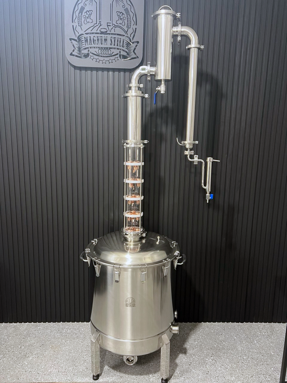 Ковпачкова колона Магнум Фермер під кламп 4" з ковпачками ProCapКуб 130лПотужність до 8 кВтЗ двома клампами під тен! Професійні ковпачки ProCap мають по центру зливний отвір для флегми, що робить їх універсальними. Немає необхідності встановлювати зливний ковпачок. Одна тарілка ProCap працює на дуже широкому діапазоні від 2500 до 8000 Вт. Принцип роботи ковпачкових тарілок полягає в тому, що надходить робоча середовище заповнює тарілку до зливної перегородки. При цьому ковпачки повністю занурені в рідину. Пара надходить крізь щілини ковпачків і барботує через шар робочої середовища Ідеально підходить для фруктово-ягідних і зернових напоїв. Мідь зберігає смак і запах вихідного продукту, а також прибирає сполуки сірки. Власне виробництво Базова комплектація:1) Перегінний куб 130л з ніпелем під термометр +2шт клампи під тен 2" (по замовчуванню)2) 2" Відвід нержавійка (для зливу) - 1шт3) 2" Кран зливний "метелик"- 1шт.4) Ніжки для регулювання висоти - 4шт.5) Джин кошик 1500мл - 1шт.6) 4" Скляна "Флейта" на 5 рівні - 1 шт.7) 4" Дефлегматор - 1 шт.8) 4"-2" перехідник - 1шт.9) 2" Повороти - 2 шт. (один з нипелем)10) Термометр - 2шт11) 2" Охолоджувач подовжений (50см) - 1 шт.12) 2" Кламповий "папуга" з носиком - 1шт.13) 2" Хомути з прокладками - 7 шт.14) 4" Хомути з прокладками - 3шт.15) Інструкція16) Сантехкомлект:→ голкові крани пластикові 2шт→ швидкозйоми латунь 2шт→ трійники пластикові 2шт→ шланг поліуретан 4м→ шланг силікон 1м→ фум-стрічка 1шт Додатково можна придбати:Тен 3 кВт, нержавійкаТен 2,5 кВт, нержавійка (антипригарний) Тен 3,5 кВт, нержавійка (антипригарний) Тен 4,5 кВт, нержавійка (антипригарний)Регулятор потужності з ПЗВ (пристрій захисного виключення)Фальшдно
