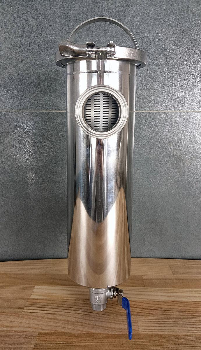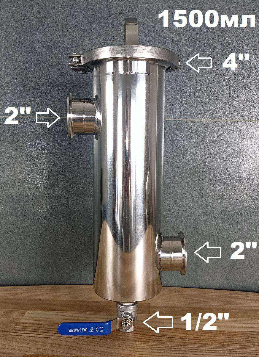 1500мл. Джин кошик із харчової нержавіючої сталі марки AISI 304. Під кламп 2" Дозволяє помістити одразу 2 пакети наших наборів для джину і виготовити за один раз від 24 до 30 літрів ароматного дистиляту. Характеристики:Кришка кламп 4"Діаметр внутрішній 98ммВысора в зборі (від крана до ручки) 450ммГлибина 310ммСтакан об'ємом 1500млВисота стакану 270ммВн. діаметр стакану 86ммВага виробу 3кг