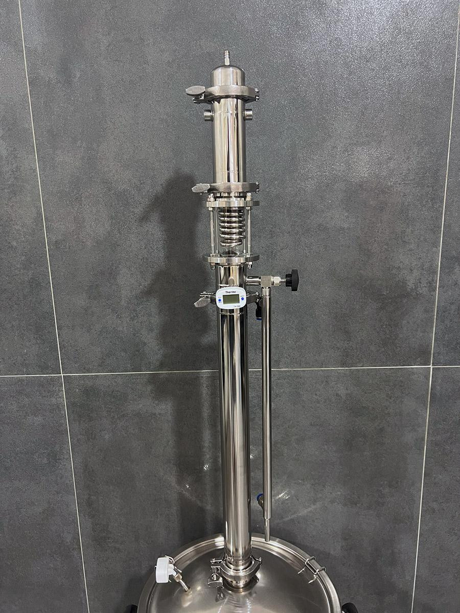 Бражно-ректифікаційна колона Magnum Spirit з екстрактором СокслетаЗ дефлегматором Дімрота та вузлом відбору Базова комплектація (без кубу):1) 2" Царга 500мм2) 2" Вузол відбору МагПро Візуал з термометром3) Голковий кран нержавійка4) Доохолоджувач5) 2" Дефлегматор Дімрота6) 2" "Носик" з трубкою зв'язку і атмосферою7) 2" Відвід 90 градусів 1шт8) 2" Трійник 1шт9) 2" Діоптр 1шт10) 2" сокслет (носик + трубка) 1шт11) 2" Хомути з прокладками 8шт12) РПН нержавійка 5шт13) Інструкція с гарантійним талоном14) Сантехкомплект:→ швидкозйоми латунь 3шт→ голковий кран (пластик) 1шт→ шланг поліуретан 4м→ шланг силікон 1м→ фум-стрічка 1шт Характеристики:Висота в зборі (без куба) 850ммДовжина трубки дефлегматора Дімрота: ≈4,5мДіаметр трубки дефлегматора ДІмрота: 6ммМаксимальна потужність конденсації дефлегматора Дімрота: 3,5 кВт*Діаметр труби 51 ммВисота царги 500 ммШтуцера швидкозйоми 1/4" під шланг 10 ммХарчова нержавіюча сталь AISI304*потужність залежить від температури води, що подається, способу підключення, швидкості подачі води та інших факторів Схема підключення води: Екстрактор Сокслета — лабораторний пристрій, що був уперше описаний Францем фон Сокслетом в 1879 році. Був розроблений для екстракції ліпідів із твердих сумішей, згодом межі його застосування значно розширились.Останнім часом даний спосіб набув шаленої популярності в домашньому винокурінні. Його використовують для збагачення напоїв ароматами трав, спецій, ягід, фруктів, горіхів та навіть деревини.Основна його перевага - швидке, майже миттєве отримання ароматизованих крафтових напоїв. Також, на відміну від ароматизації способом настоювання, для збагачення напою улюбленими смаками потрібно використовувати два рази менше інгредієнтів. Способи екстрагування:1) Після екстракції продукт залишається в перегінному кубі та остигає. Після того, як він досягне кімнатної температури, його розбавляють до питної міцності (при потребі фільтрують) та дають відпочити. Через декілька днів напій готовий до вживання. Отриманий напій може мати не лише приємний аромат та післясмак, а й специфічний відтінок.Рекомендована міцність сировини 50-60 градусів. Кількість циклів екстрагування залежить інгредієнтів та ваших смаків. Зазвичай це 7-12 циклів.Цей спосіб найчастіше використовують для екстракції більш легких на смак та запах інгредієнтів. Якщо ваші інгредієнти містять великий відсоток ефірних масел чи смол (полин, м'ята, горіхи, ялівець) - рекомендуємо використовувати другий спосіб екстрагування. 2) Після декількох циклів екстракції продукт переганяють та відбираюсь "в білому виді". При цьому він буде повністю прозорий та достатньо міцний. Його потрібно розбавити до питної міцності та дати відпочити декілька днів для нормалізації смакових та ароматичних властивостей.Переганяти можна окремим циклом, встановивши колону на перегінний куб замість екстрактора або відразу встановити вузол відбору "по рідині" та відбирати готовий продукт за його допомогою без розбору екстрактора.Рекомендована міцність сировини 30-40 градусів. Кількість циклів екстрагування залежить інгредієнтів та ваших смаків. Зазвичай це 7-20 циклів.Використовуйте очищену сировину без "голів" та "хвостів" при експлуатації екстрактору Сокслета! Звертаємо Вашу увагу на те, що різні інгредієнти та їх суміші по різному себе проявляють в процесі екстрагування. На дани