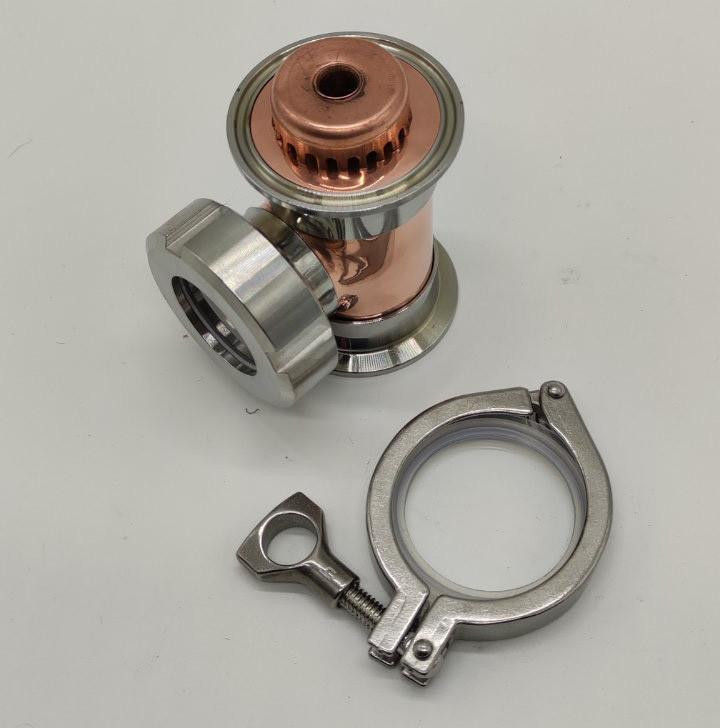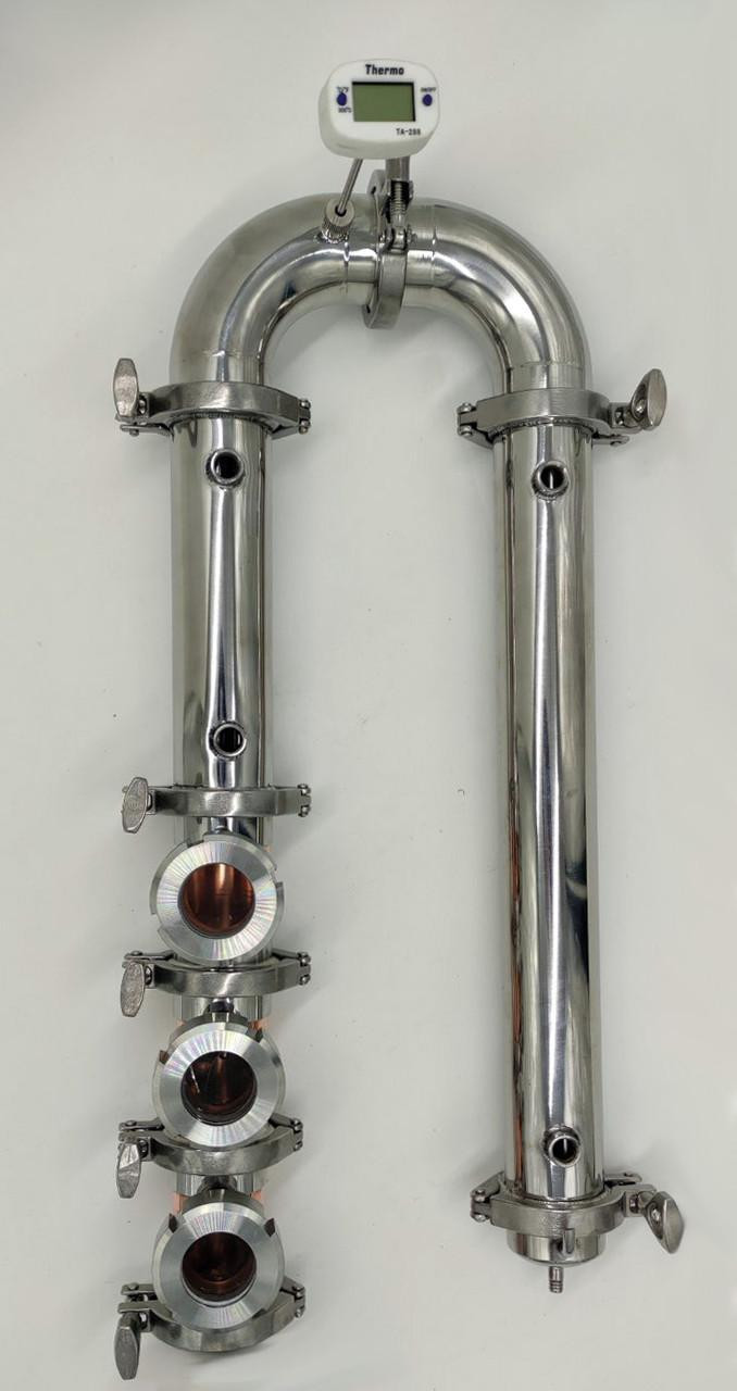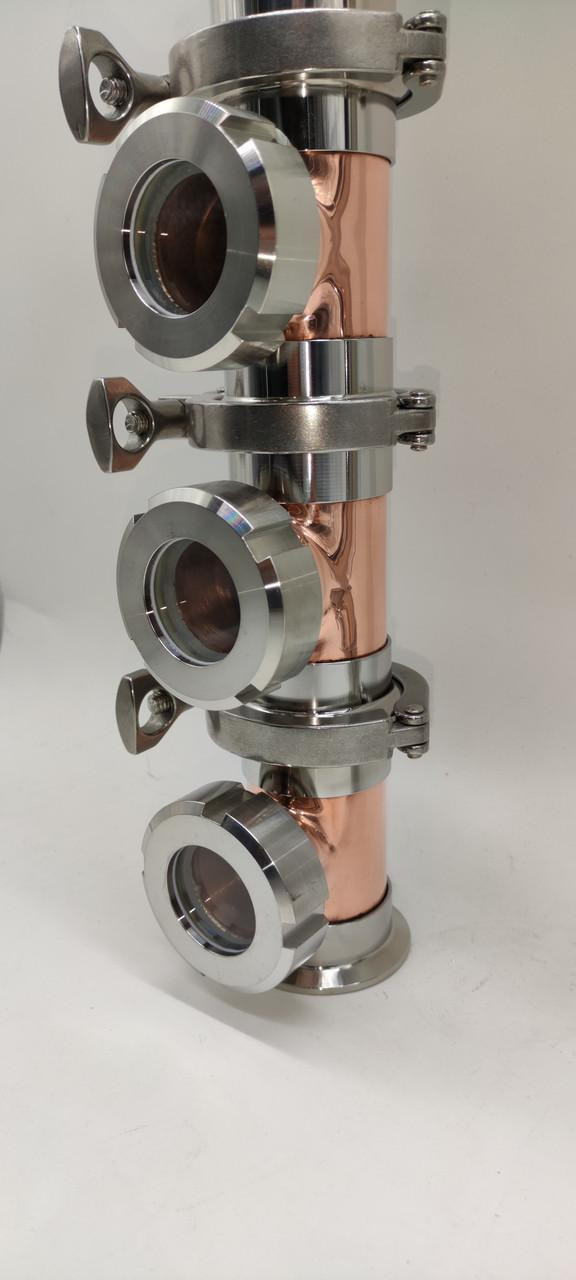 Новинка 2021р.!Мідна колпачкова колона "флейта" Вавілон преміум на 3 рівня (без куба)В комплекті:- 3шт. Рівень під кламп 2" (діаметр "юбки" 64мм) з оглядовим вікном- 3шт. Мідний ковпачок з тарілкою- 8шт. Хомут з прокладкою 2"- 1шт. Дефлегматор нержавійка- 2шт. Відводи нержавійка (один с ніпелем)- 1шт. термометр - 1шт. Конденсатор- 1шт. "Носик"- Сантехкомплект (в подарунок) Висота рівня 90ммЗагальна висота (три рівні) 610ммДіаметр мідної труби 47ммДіаметр "юбки" клампа 2" 64ммПриварний діоптр 1,5"Потужність до 3 кВт