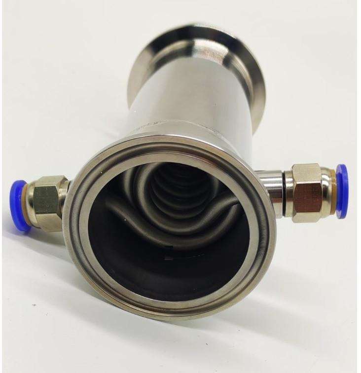 Двогрядний дефлегматор Дімрота з нержавійкиДовжина трубки: 4,5мДіаметр трубки: 6ммМатеріал: Нержавійка харчова AISI304Загальная висота: 200ммВисота від клампу до клампу 125ммМаксимальна потужність конденсації: 4 кВтШвидкозйоми з зовнішньою різьбою 1/4", під шланг 10мм