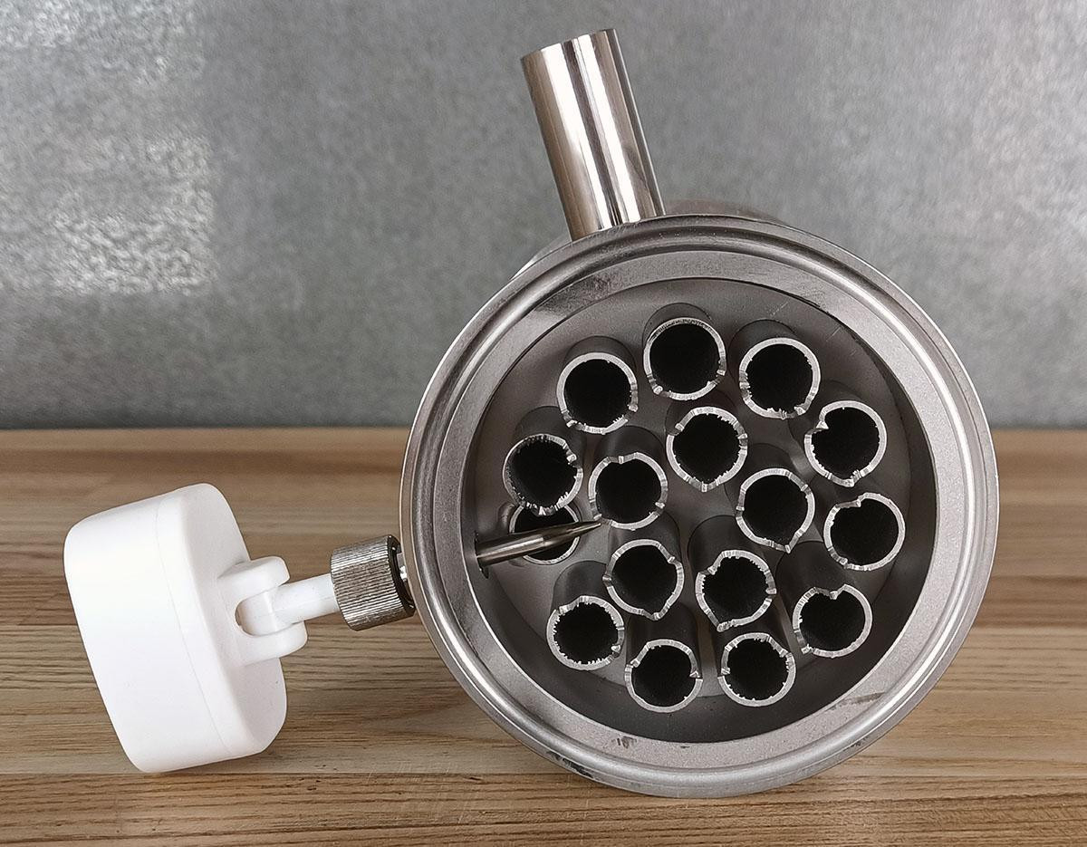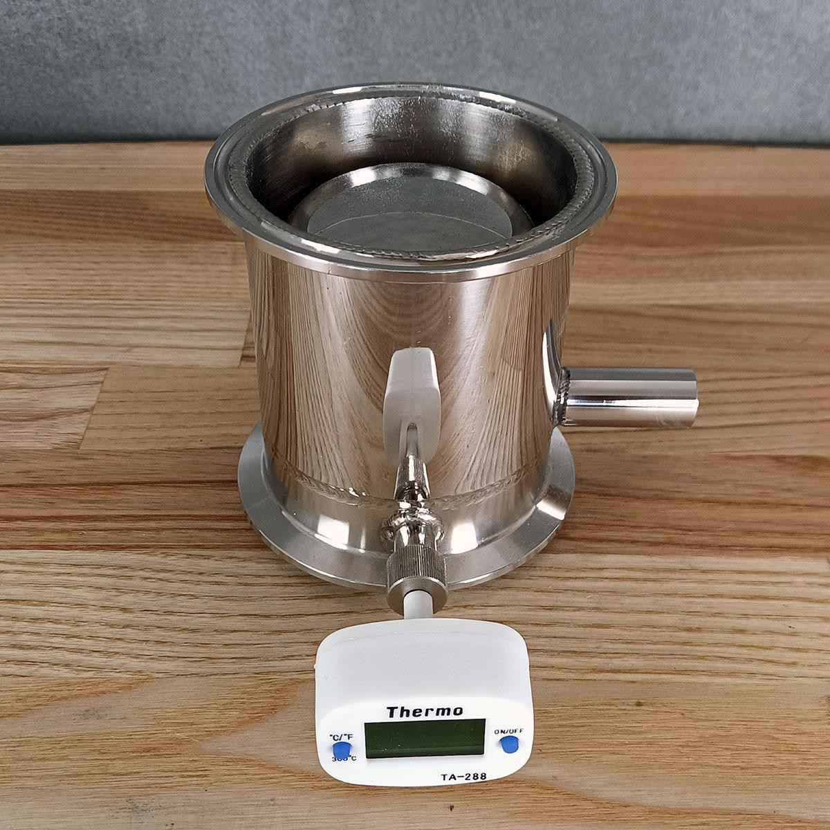 3" MagPro - професійний вузол відбору "по рідини" з трубками орощенняПід кламповое з'єднання 3" Принцип роботи: Конденсат, стікаючи по сферичной кришці вузла, потрапляє в зону накопичення флегми. Надлишок рідини стікає по трубкам орошення, що рівномірно позподіляють флегму по всій площі насадки для збільшення ефективності тепломасообміну в колоні За допомогою голкового крану можна відрегулювати швидкість відбору рідини. Налаштування покапельного відбору "голів" не викликає ніяких труднощів.Голковий кран і доохолоджувач не входить в комплект! Термометр знаходиться в паровій зоні, що дає можливість максимально точно вимірювати температуру пари без попадання на нього конденсату і без стрибків температуриНіпель для термометра з отвором 6мм дає можливість встановити щуп автоматикиКомплектація:3" Вузол відбору MagPro з ніпелем під термометрТермометр електронний Характеристики:Кількість активних трубок - 15штКількість точок орошення - 35штРізьба для підключення крану - 1/4" (внутрішня)Діаметр трубок 12*10ммЗагальна висота - 90ммПотужність 5-6 кВтМатеріал - харчова нержавійка AISI304