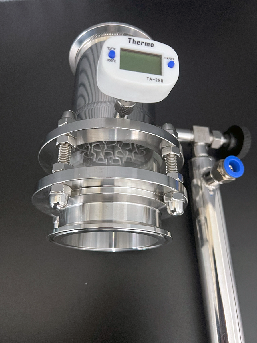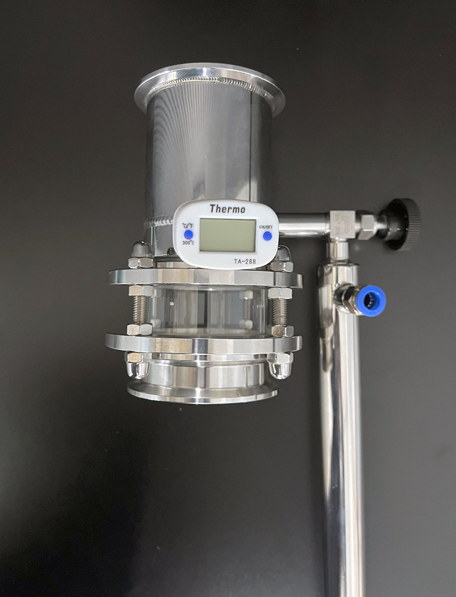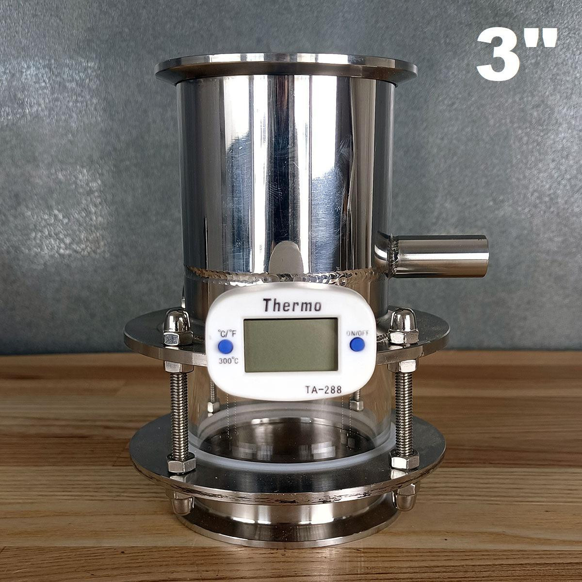 MagProVisual - професійний вузол відбору "по рідини" з трубками орощення, діоптром та доохолоджувачемПід кламповое з'єднання 3" Принцип роботи: Конденсат, стікаючи по сферичной кришці вузла, потрапляє в зону накопичення флегми. Надлишок рідини стікає по трубкам орошення, що рівномірно позподіляють флегму по всій площі насадки для збільшення ефективності тепломасообміну в колоні За допомогою голкового крану можна відрегулювати швидкість відбору рідини. Налаштування покапельного відбору "голів" не викликає ніяких труднощів. Термометр знаходиться в паровій зоні, що дає можливість максимально точно вимірювати температуру пари без попадання на нього конденсату і без стрибків температуриКомплектація:3" Вузол відбору MagProVisualТермометр електроннийГолковий кран з нержавійкиДоохолоджувач зі швидкозйомами