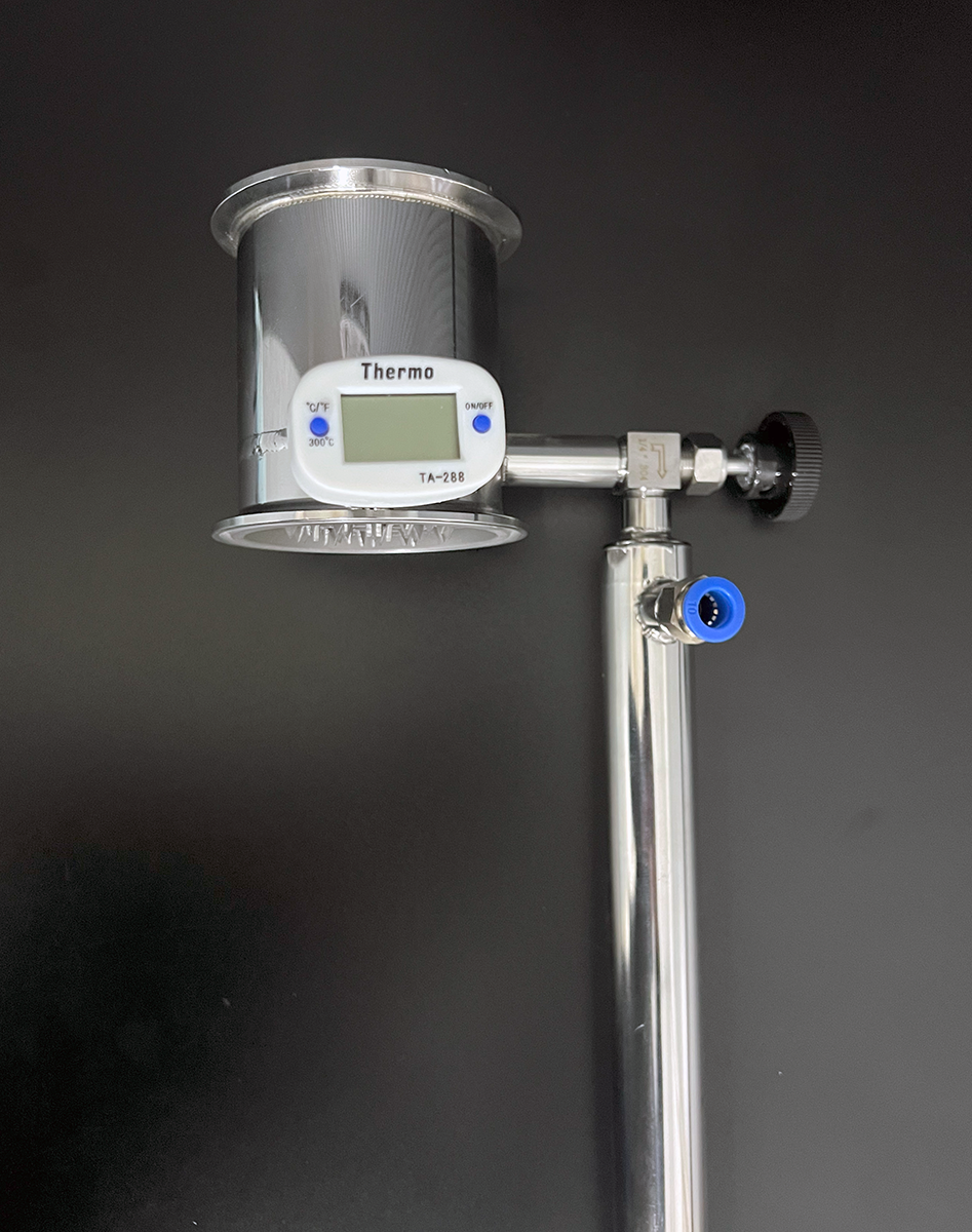 MagPro - професійний вузол відбору "по рідини" з трубками орощення та доохолоджувачемПід кламповое з'єднання 3" Принцип роботи: Конденсат, стікаючи по сферичной кришці вузла, потрапляє в зону накопичення флегми. Надлишок рідини стікає по трубкам орошення, що рівномірно позподіляють флегму по всій площі насадки для збільшення ефективності тепломасообміну в колоні За допомогою голкового крану можна відрегулювати швидкість відбору рідини. Налаштування покапельного відбору "голів" не викликає ніяких труднощів. Термометр знаходиться в паровій зоні, що дає можливість максимально точно вимірювати температуру пари без попадання на нього конденсату і без стрибків температуриКомплектація:3" Вузол відбору MagProТермометр електроннийГолковий кран з нержавійкиДоохолоджувач зі швидкозйомами