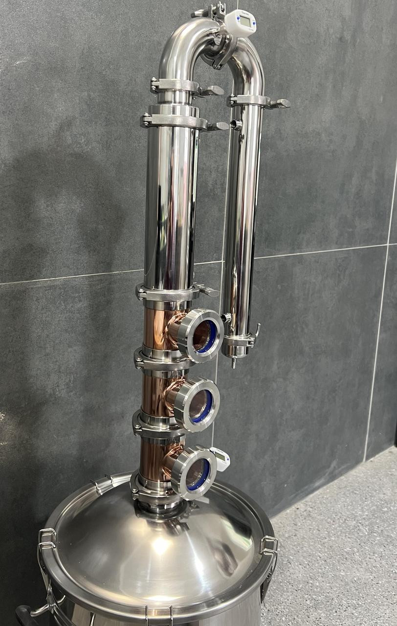 Мідна колпачкова колона на 3" Базова комплектація:1) Перегінний куб зі зливним краном та ніпелем під термометр2) 3" Мідні Преміум рівні 3шт3) 3" Дефлегматор 1шт4) 3"-2" перехідник 1шт5) 2" Відводи 2шт (один з ніпелем)6) Термометр 2шт7) 2" Охолоджувач 1шт8) 2" Прийомний "носик"9) 3" Хомути с прокладками 5шт10) 2" Хомути з прокладками 4шт11) Інструкція12) Сантехкомплект:→ голкові крани пластикові 2шт→ швидкозйоми латунь 2шт→ трійники пластикові 2шт→ шланг поліуретан 4м→ шланг силікон 1м→ фум-стрічка 1шт Додаткові опції:Встановлення 2" клампу під тенДодатковий рівень (+3950грн) Додатково можна придбати:Тен 3 кВт, нержавійка Тен 2,5 кВт, нержавійка (антипригарний) Тен 3,5 кВт, нержавійка (антипригарний),Тен 4,5 кВт, нержавійка (антипригарний), Регулятор потужності з ПЗВ (пристрій захисного виключення)ФальшдноСито (бункер) для затирання Нова модель ковпачків ProCap зі збільшеними розмірами дозволяє працювати на потужності 5 кВт Характеристики:Висота рівня 117ммЗагальна висота колони (з трьома рівнями, без куба) 745ммЗагальна висота з кубом 40л/85л 1270/1400ммДіаметр мідної труби 72ммДіаметр "юбки" клампа 3" 91ммПриварний діоптр 2"Дефлегматор 250мм, 19 трубок вн. діаметром 8.5мм (до 5 кВт) 5 перегородокОхолоджувач 400мм 9 трубок Параметри з упаковкою (Д/Ш/В, вага):3 рівні 40/40/54см., 18кг4 рівні 40/40/54см., 19,5кг5 рівнів 40/40/54см., 21кг
