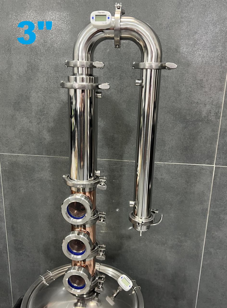 Мідна колпачкова колона на 3" Базова комплектація:1) Перегінний куб зі зливним краном та ніпелем під термометр2) 3" Мідні Преміум рівні 3шт3) 3" Дефлегматор 1шт4) 3"-2" перехідник 1шт5) 2" Відводи 2шт (один з ніпелем)6) Термометр 2шт7) 2" Охолоджувач 1шт8) 2" Прийомний "носик"9) 3" Хомути с прокладками 5шт10) 2" Хомути з прокладками 4шт11) Інструкція12) Сантехкомплект:→ голкові крани пластикові 2шт→ швидкозйоми латунь 2шт→ трійники пластикові 2шт→ шланг поліуретан 4м→ шланг силікон 1м→ фум-стрічка 1шт Додаткові опції:Встановлення 2" клампу під тенДодатковий рівень (+3950грн) Додатково можна придбати:Тен 3 кВт, нержавійка Тен 2,5 кВт, нержавійка (антипригарний) Тен 3,5 кВт, нержавійка (антипригарний),Тен 4,5 кВт, нержавійка (антипригарний), Регулятор потужності з ПЗВ (пристрій захисного виключення)ФальшдноСито (бункер) для затирання Нова модель ковпачків ProCap зі збільшеними розмірами дозволяє працювати на потужності 5 кВт Характеристики:Висота рівня 117ммЗагальна висота колони (з трьома рівнями, без куба) 745ммЗагальна висота з кубом 40л/85л 1270/1400ммДіаметр мідної труби 72ммДіаметр "юбки" клампа 3" 91ммПриварний діоптр 2"Дефлегматор 250мм, 19 трубок вн. діаметром 8.5мм (до 5 кВт) 5 перегородокОхолоджувач 400мм 9 трубок Параметри з упаковкою (Д/Ш/В, вага):45/45/59., 20кг