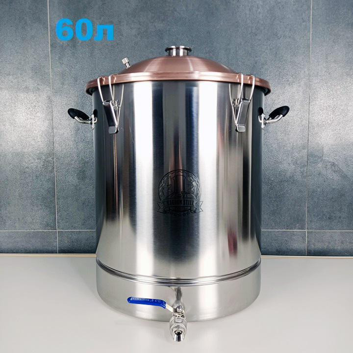 Базова комплектація: Перегінний куб з мідною сферичною (купольною) кришкою під кламп 2"Термометр електроннийНіпель під термометр, нержавійкаКран зливний, нержавійка, різьба 1/2" внутрішня Додаткові опції:Встановлення 3" кламп на кришку замість 2" Встановлення 4" кламп на кришку замість 2" Встановлення 2" клампу під тен Додатково можна придбати:Тен 3 кВт, нержавійкаТен 2,5 кВт, нержавійка (антипригарний)Тен 3,5 кВт, нержавійка (антипригарний)Тен 4,5 кВт, нержавійка (антипригарний)Регулятор потужності з ПЗВ (пристрій захисного виключення)ФальшдноСито (бункер) для затирання Характеристики:Харчова нержавіюча сталь AISI304Харчова мідь марки М1Об'єм ємності 60лРозміри (діаметр/висота з клампом): ≈40 / 58 см.Об'єм кришки: ≈ 4 лТовщина кришки 1,2 мм.Товщина стінок куба 1 мм.Товщина дна близько 5 мм.Дно плоске, трихшарове, з алюмінієвим прошарком для рівномірного розподілу тепла.Матеріал дна AISI 430 (магнітна харчова нержавійка)Прорезинені ручкиМуфта під кран з зовнішньою різьбою 1/2".Кран з харчової нержавійки 1/2"Ребро жорсткості для встановлення фальш дна на відстані близько 80 мм. від днаКількість зажимів 5 шт.Параметри з упаковкою (Д/Ш/В, вага):45/45/59 см., 10 кг.