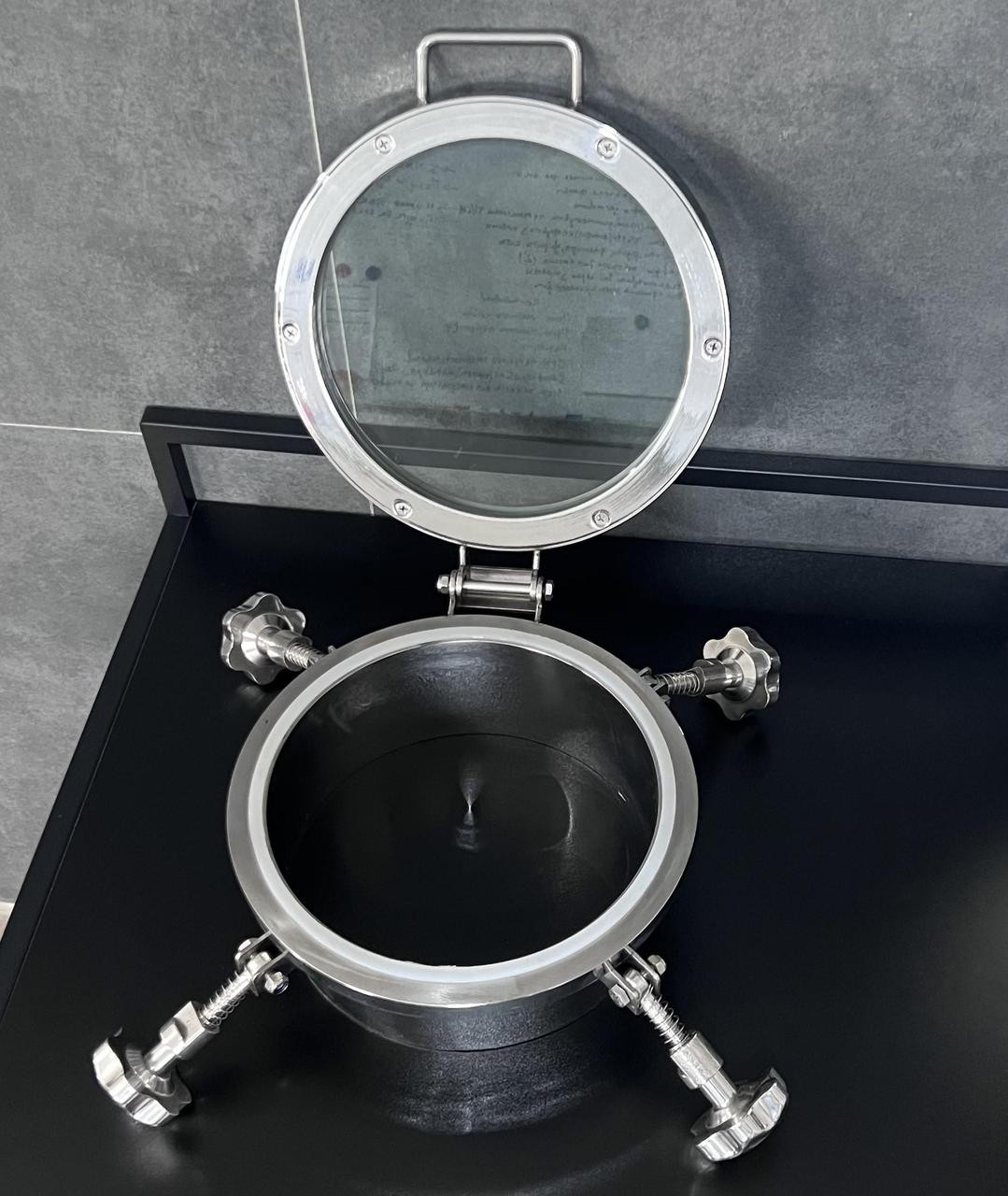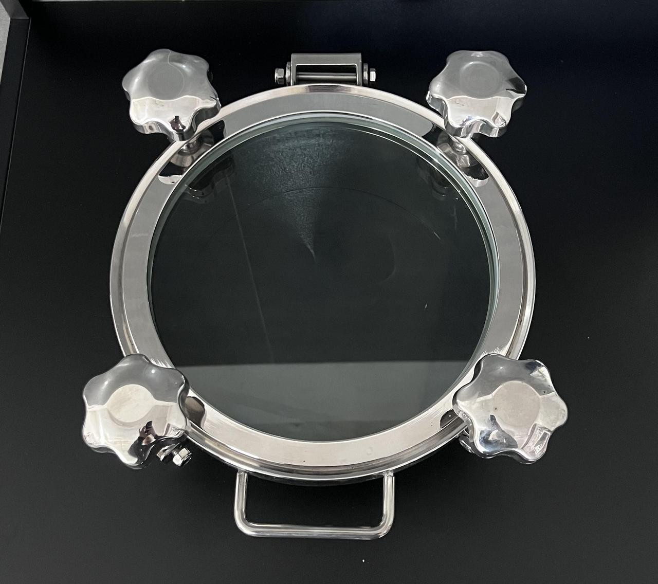 Характеристика товару:· Люк: з боросилікатного скла, товщина скла 3 мм;· Витримує тиск: до 3 бар;· Діаметр приварної частини: 255 мм;· Діаметр оглядового скла: 250 мм;· Внутрішній діаметр люка: 250 мм; · Матеріал – нержавіюча сталь AISI304, ущільнення – силікон.