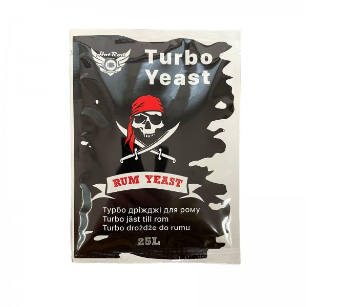 Турбо-дріжджі Hot Rod Rum для рому на 25 л (71 г) Надайте Вашему рому неймовірний аромат та смак за допомогою турбо-дріжджів Hot Rod Rum!Спеціально розроблений для браг на основі меляси, цей продукт дозволить легко і швидко приготувати унікальний ром просто вдома. Поради з використання: Додайте до 21 л теплої води 4.5 кг цукру та 2 кг тростинної або бурякової меляси. Перемішайте до повного розчинення, а потім всипте вміст цього пакету і добре перемішайте. Бродіння триватиме при температурі від 22 до 30 °С протягом 4-5 днів. Ідеальна температура бродіння – 25 °С, а максимально допустима – 35 °С. Ви зможете насолоджуватися багатим ароматом та чудовим смаком вашого рому завдяки особливому штаму дріжджів та його унікальному складу, що включає поживні речовини, вітаміни, мікроелементи та ферменти. Турбо-дріжджі Hot Rod Rum підходять як для зброджування тростинної, так і бурякової меляси, що розширює ваші можливості у створенні улюблених напоїв. Термін придатності продукту становить 2 роки, а дата виробництва зазначена на упаковці.
